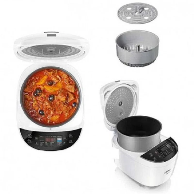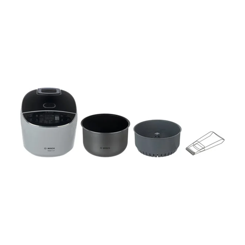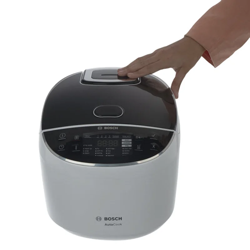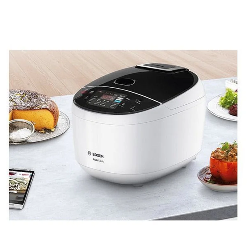 پلوپز و مولتی کوکر بوش BOSCH مدل MUC11W12 با توان 900 وات و با طراحی زیبا جلوه خاصی به آشپزخانه شما میبخشد. مولتی کوکر MUC11W12 دارای 50 برنامه اتوماتیک میباشد که اکثر نیاز های شما را در آشپزی بر آورده میسازد . این برنامه ها شامل پخت برنج ، خورشت و پاستا ، سرخ کردن کم روغن و با روغن ، به عمل آوردن ماست ، تهیه مربا و … است . پنل این دستگاه به صورت لمسی بوده و تنها با لمس برنامه دلخواه خود، پیچیده ترین غذا ها در مدت زمان مناسبی تهیه میشوند. ظرفیت این پلوپز 5 لیتر بوده که برای 10 نفر مناسب میباشد. از ویژگی های منحصر به فرد مولتی کوکر بوش میتوان به قابلیت شروع با تاخیر تا 12 ساعت و سیستم گرم نگهدارنده عذا اشاره نمود. قابلیت شروع با تاخیر و گرم نگهدارنده بسیار مناسب برای زندگی کارمندی بوده و شما میتوانید از شب قبل مواد غذایی را داخل این مولتی کوکر قرار دهید و زمان شروع پخت غذا را برای صبح تنظیم نمایید . با فعال نمودن حالت گرم نگهدارنده ، هنگام سرو ، غذایی گرم و مطبوع فراهم است.