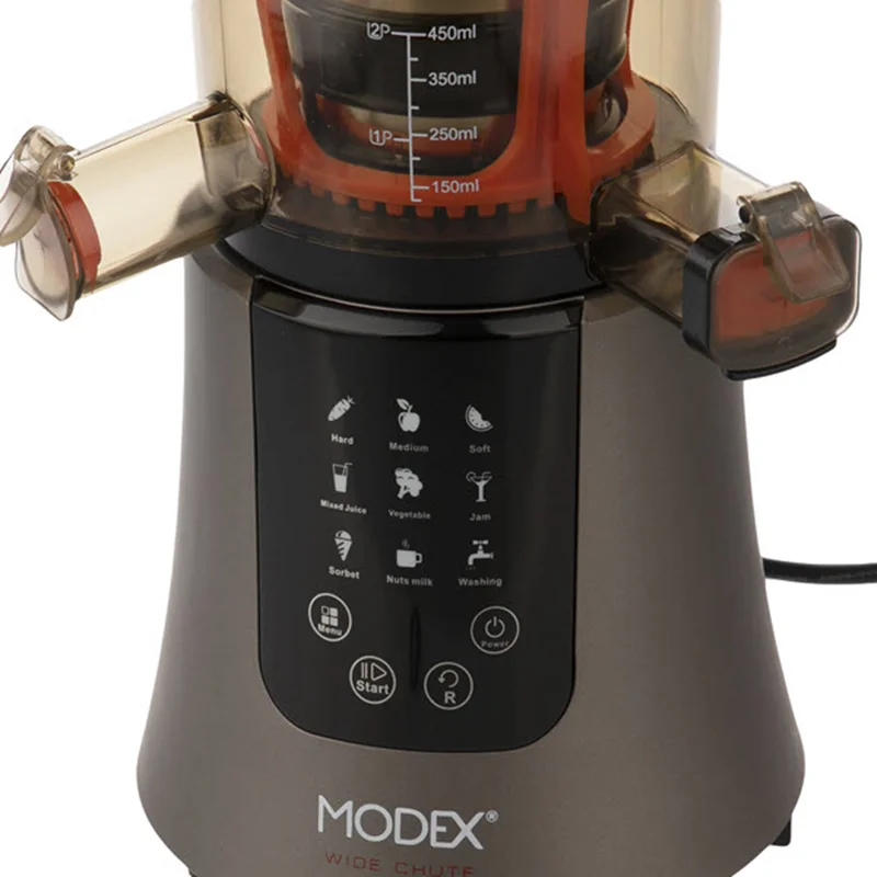 آبمیوهگیری مدل SJ595 یک دستگاه با کیفیت و طراحی مدرن از شرکت مودکس است. عصاره گیر و آبمیوهگیری مودکس مدل SJ595 باتوانی معادل 200 وات محصولی کارآمد و مستحکم با بدنهای از جنس استیل و پلاستیک است. این مدل وسیلهای کم صدا و ایدە ال برای تهیهی آبمیوههای سالم با طعم واقعی و طبیعی محسوب میشود. این آبمیوهگیری عملکردی پرقدرت اما با سرعت نسبتا کم دارد و با عملکرد آرام خود موجب حفظ طعم خوب میوههای تازه میشود و برخلاف آبمیوهگیریهای سریع، از وجود تفالههای ریزشده داخل عصارهی میوه جلوگیری میکند. این دستگاه با بهرهمندی از تیغهی مستحکم، فیلتر استیل ضدزنگ و قدرت موتور بالا به آسانی میوهها را له میکند و عصاره آنها را آمادهی استفاده میکند. این آبمیوهگیری عملکردی کمصدا دارد و کارکرد آن گوش را آزار نمیدهد. پایههای چسبنده زیر دستگاه مانع از جابهجایی و لغزش دستگاه میشود و از بروز هر خطری جلوگیری میکند.