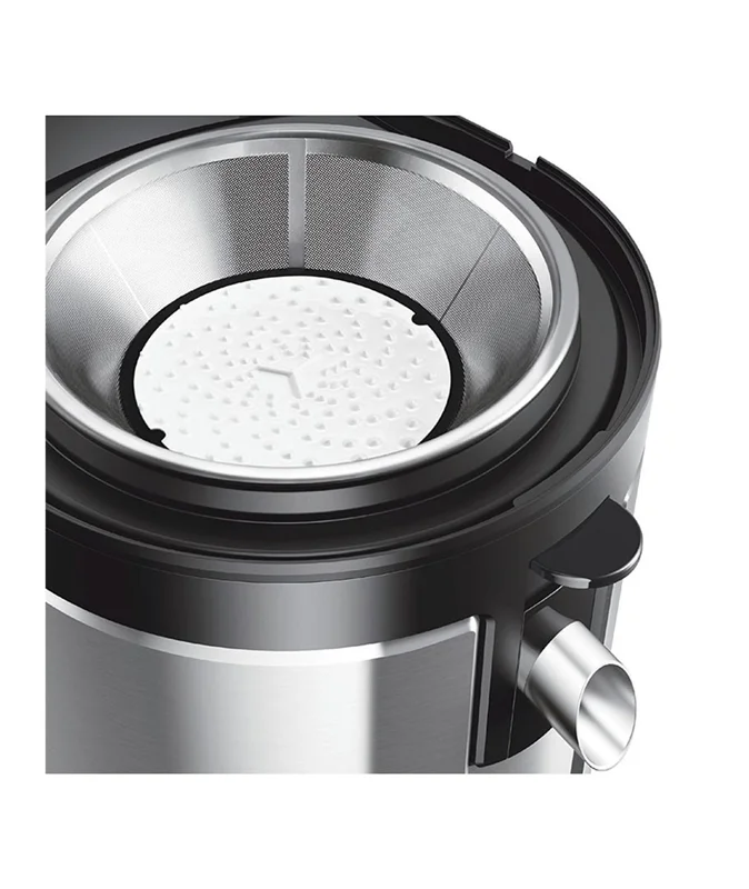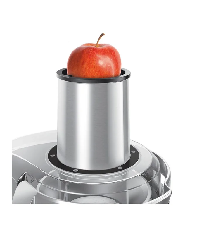 طراحی زیبا و منحصربه فرد را داراست، این دستگاه با قدرت 1200 واتی خود یکی دیگر از محصولات کمپانی معتبر بوش می باشد. جنس بدنه از آلمینیوم دایکاست، که کیفیت بسیار مطلوب دارد، دهانه ورودی 84 میلیمتری این امکان را فراهم آورده که میوه ها را به صورت کامل و بدون نیاز به خرد کردن داخل دستگاه بریزید. چکه گیر موجود در دستگاه باعث می شود تا بعداز انجام آبمیوه گیری دیگر هیچ قطره ای از دستگاه روی محیط نریزد.جنس تیغیه این آمیوه گیری از نوع سرامیک می باشد که دارای کیفیت بالای می باشد و به راحتی می توان آن را برای نظافت از دستگاه خارج کنیم، تیغه سرامیکی مزیتی که نسبت به تیغه های دیگر دارد به هیچ عنوان کند نمی شود.از دیگر ویژگی این دستگاه می توان به باز و بسته کردن خیلی راحت توسط یک دستگیر آلمینیومی اشاره نمود. درپوش شفاف روی دستگاه امکان دید مخزن تفاله رو برای شما ایجاد می کند تا در صورت پر بودن مخزن تفاله کاربر بتواند آن را به راحتی تخلیه کند. از ویژگی های این دستگاه می توان به مخزن جدا شونده 1.5لیتری تفاله و پایه های چسبنده آن اشاره کرد که این دو ویژگی برای حذف لرزش و کم شدن صدا این دستگاه می باشد.