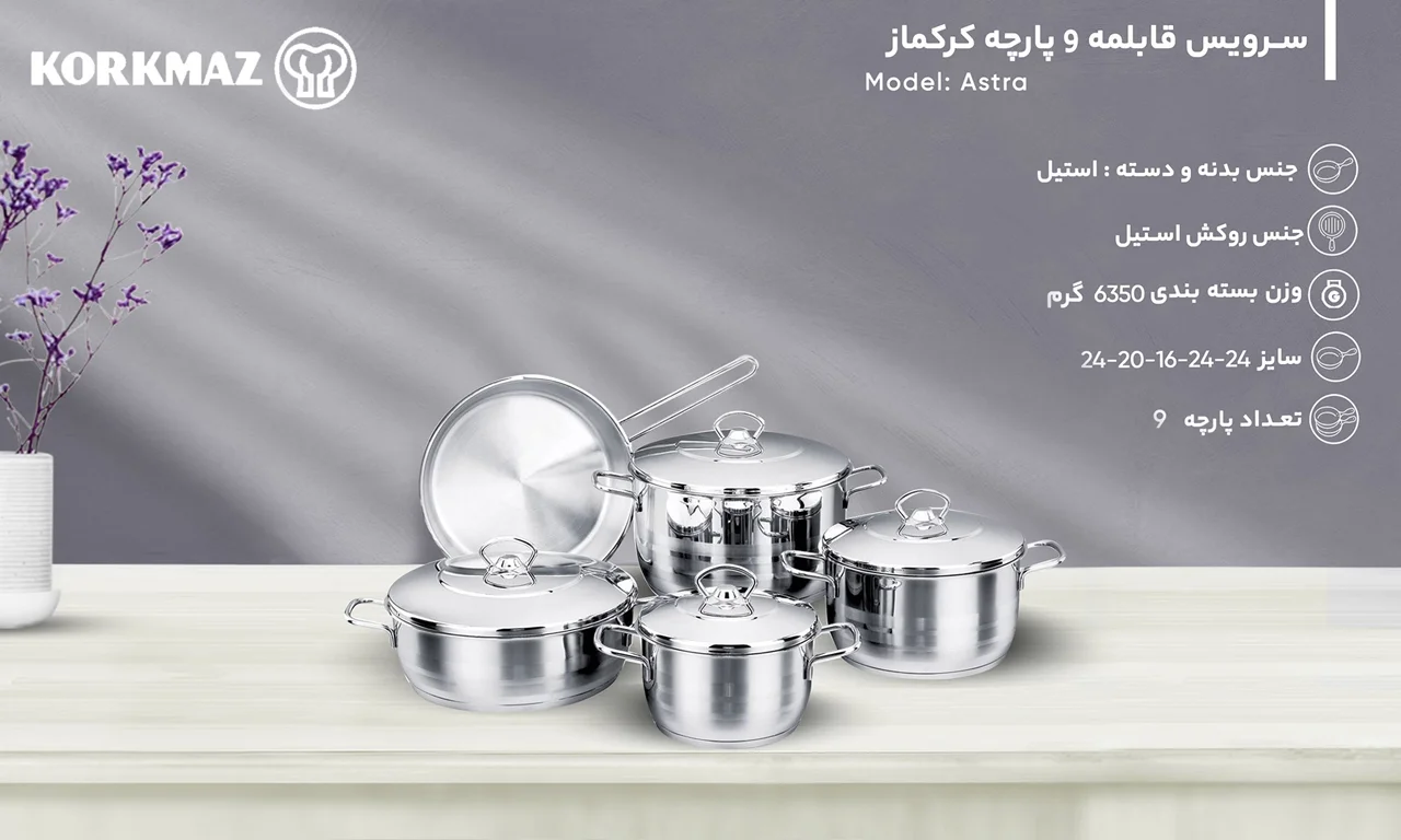 ورق استیل ضد زنگ INOX که در محصولات کرکماز به کار میرود، مرغوبترین نوع استیل است که ترکیبی از فولاد و کروم و نیکل بوده و در طول زمان ظاهر براق و شکل خود را حفظ میکند. این نوع استیل، استیل کروم-نیکل 10/18 نامیده میشود و به صورت مادامالعمر ضد زنگ و خوردگی است و فرسایش نمییابد. به دلیل عدم وجود پوشش خاص درون ظروف کرکماز، این ظروف کاملا بهداشتی و سالم هستند و بهترین انتخاب برای پخت و پز به شمار میآیند. به علاوه، کفهی سه لایهی چدنی سرویسهای قابلمه کرکماز دارای کپسولهای حرارتی است که موجب پخش یکنواخت و موثرتر حرارت میشود و در انرژی و زمان پخت و پز صرفه جویی به عمل میآورد. دستهها و برآمدگی در قابلمهی کرکماز حرارت را جذب نمیکند و همیشه خنک است و بنابراین باعث سوختن دست نمیشود. ظروف کرکماز نچسب و نسوز هستند و بنابراین برای پخت غذاهای بدون آب و روغن و نیز مناسب هستند.