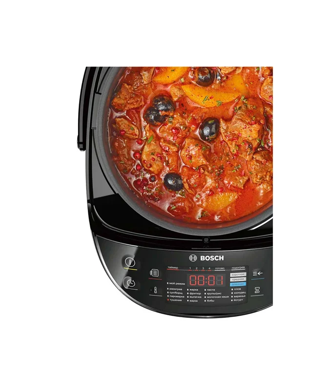 پلوپز و مولتی کوکر MUC22B42RU از برند بوش و ساخت کشور چین است. توان این پلوپز 900 وات و رنگ آن مشکی، که به آشپزخانه شما جلوه ی تازه ای می بخشد. این مولتی کوکر دارای 48 برنامه خودکار است که تقریبا بیشتر نیازهای شما را برآورده می سازند. برنامه های تنظیم شده برای این پلوپز عبارتند از: پخت برنج، خورشت و پاستا، ته دیگ، پخت گوشت، تهیه مربا و …پنل پلوپز BOSCH مدل MUC22B42RU به صورت لمسی است. تنها با لمس یک دکمه می توان پیچیده ترین غذاها را در یک زمان مشخصی آماده کرد. این پلوپز می تواند برای 10 نفر غذا آماده کند و ظرفیت آن 5 لیتر است. این مولتی کوکر دارای ویژگی های دیگری نیز هست که عبارتند از: قابلیت شروع با تاخیر 12 ساعت. سیستم گرم نگهداره تا 10 ساعت. زمانی که از قابلیت حالت گرم نگهداره استفاده می کنید، هنگام سرو غذا می توانید غذایی گرم و مطبوع داشه باشید.