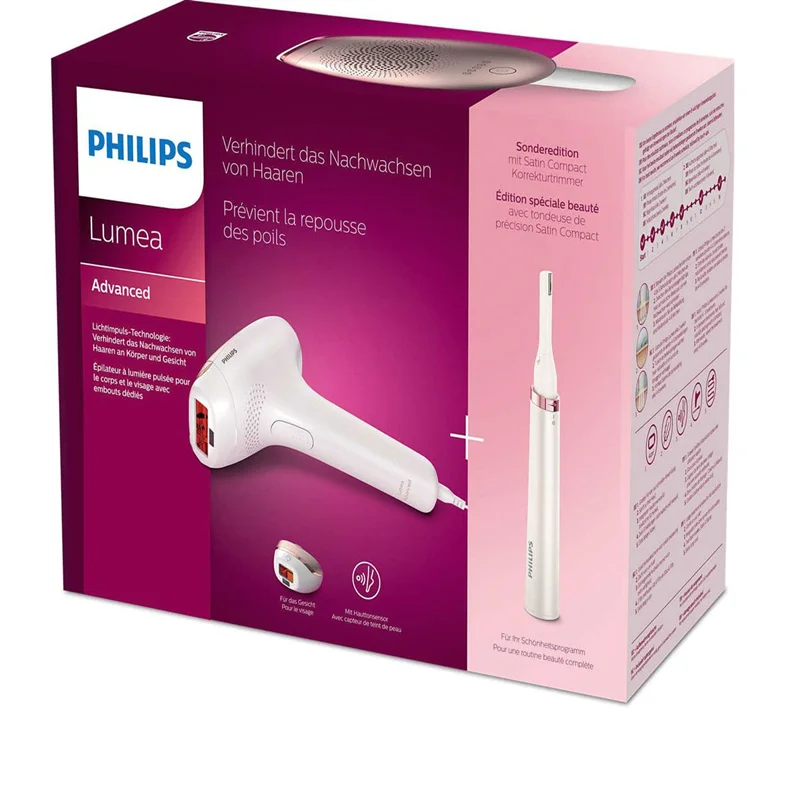 مجموعه اصلاح لومه آ BRI921 فیلیپس یک ست شامل یک دستگاه لیزر مدل SC1997 و یک تریمر مدل HP6388 مخصوص اصلاح دقیق تر موهای صورت است. دستگاه لیزر بدن بر پایه تکنولوژی IPL است. این دستگاه دارای 5 حالت تنظیم سطح انرژی و حداقل 250000 پالس نوری می باشد. از این مدل می توان به راحتی برای از بین بردن موهای بدن شامل دست ، پا ، شکم ، زیر بغل و ناحیه بیکینی و همچنین ناحیه صورت استفاده کرد. لومه آ فیلیپس به صورت با سیم بوده و تنها در حالت اتصال به برق کار می کند. به همراه این محصول یک سری بزرگ مخصوص بدن و یک سری مخصوص صورت مجهز به فیلتر اضافی ارائه می گردد. از تریمر قرار گرفته در این ست می توان برای حذف کامل موهای صورت و همچنین اصلاح ابروها استفاده کرد. این تریمر ابعاد بسیار کوچکی دارد و به راحتی قابل جابه جا کردن است. منبع تغذیه این تریمر باتری نیم قلمی (AAA) است. تریمر HP6388 مجز به یک شانه اضافی بوده که از آن برای کوتاه کردن ابرو ها استفاده می گردد.